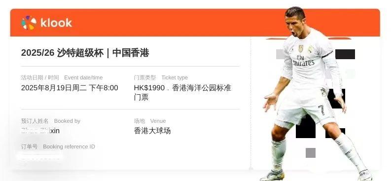 票到手,青春不留白,香港见C(c罗)、B(本泽马)、N(纳乔)!