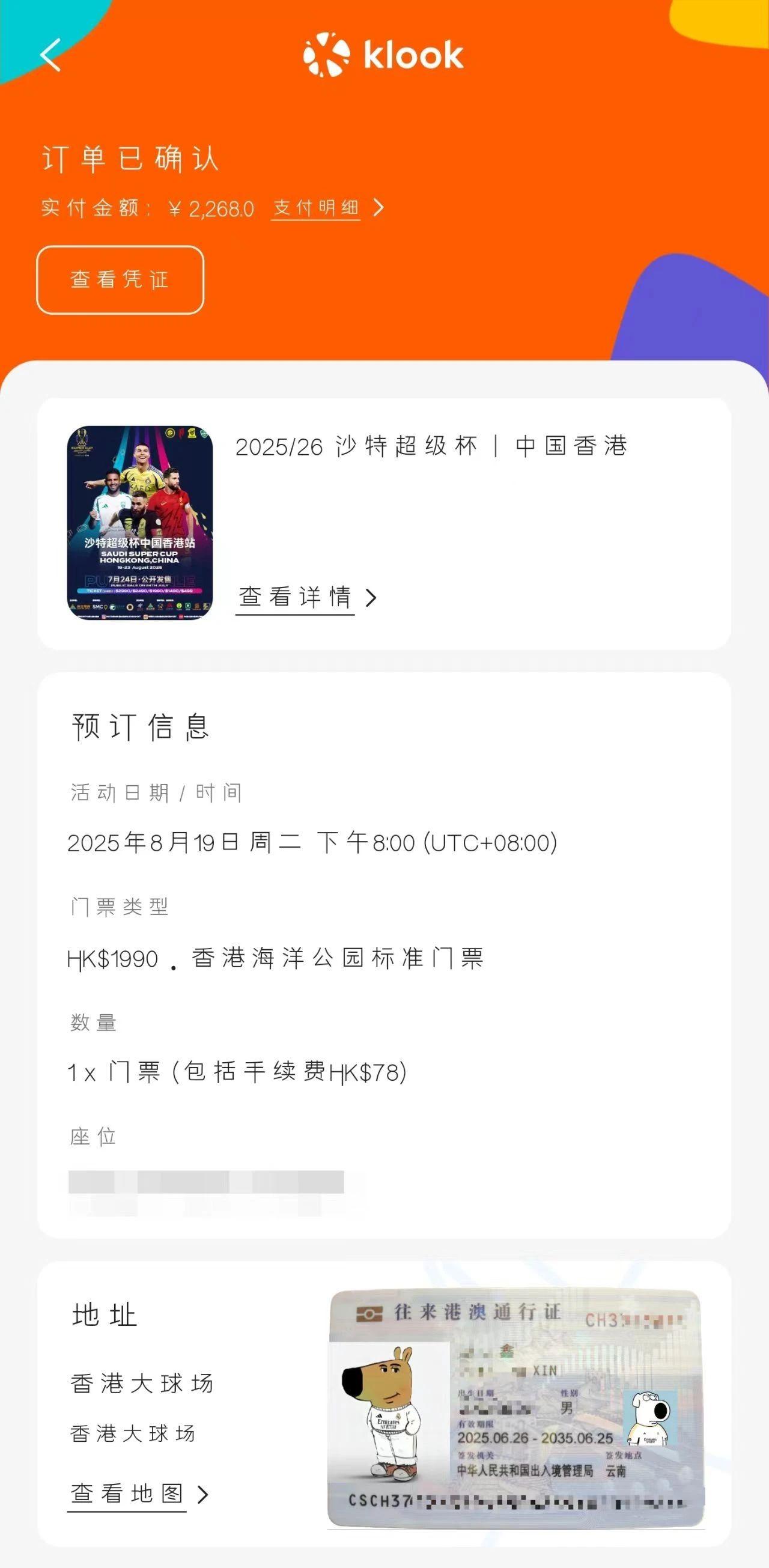 微信时光机#c罗香港行票到手