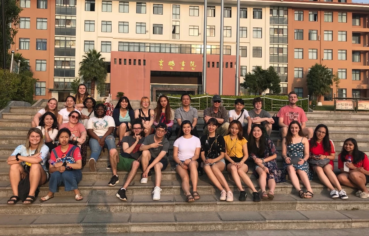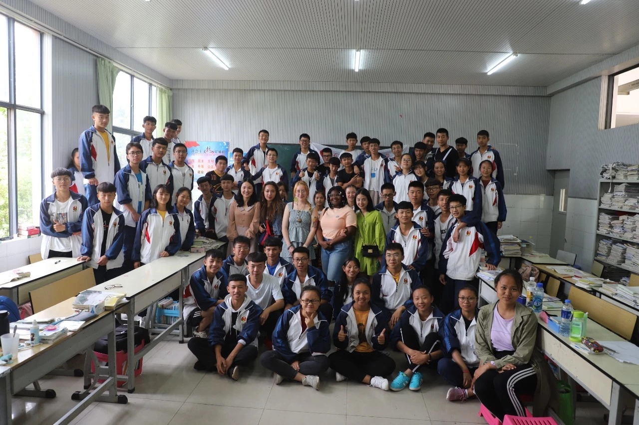 就在2019.05.20我们学校来了一群外国大学生进行为期一周的“第二届国际文化交流周”,他们是美国俄亥俄州立大学的大学生,除了美国的这群大学生外还有西南民族大学的学生陪同他们一起,另外还有俄亥俄州立大学的东亚系的教授马克教授(挺高~)+西南民族大学彝学学院罗庆春