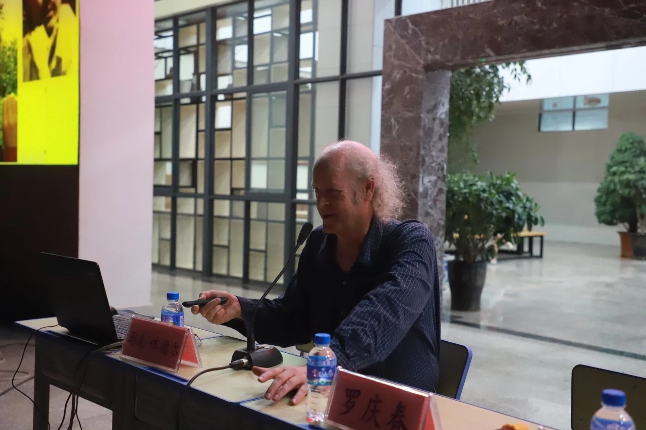 然后是晚上的讲座:西南民族大学彝学学院院长罗庆春教授作题为《全球化背景下中国民族高等教育办学使命与思路》讲座和美国俄亥俄州立大学东亚系系主任马克教授作题为《阿库乌雾诗歌表演在美国新英格兰地区》讲座:阿库乌雾就是罗庆春