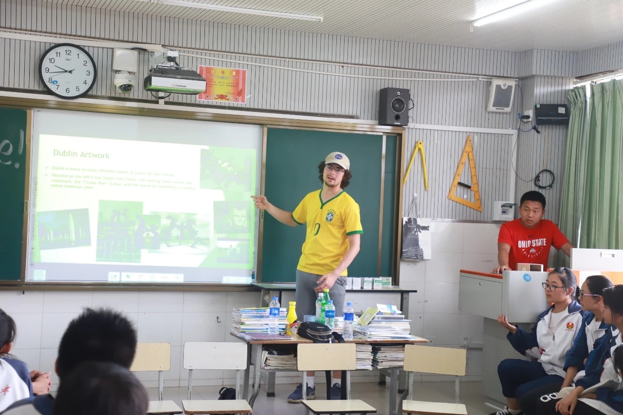 星期四早上的时候大学生都来我们班上进行亲密交流~在这之前英语老师就通知我们要准备ppt来介绍我们,还有我们的家乡,以及准备节目和他们进行互动。我感觉这次互动很是尴尬,交流出现障碍。。。